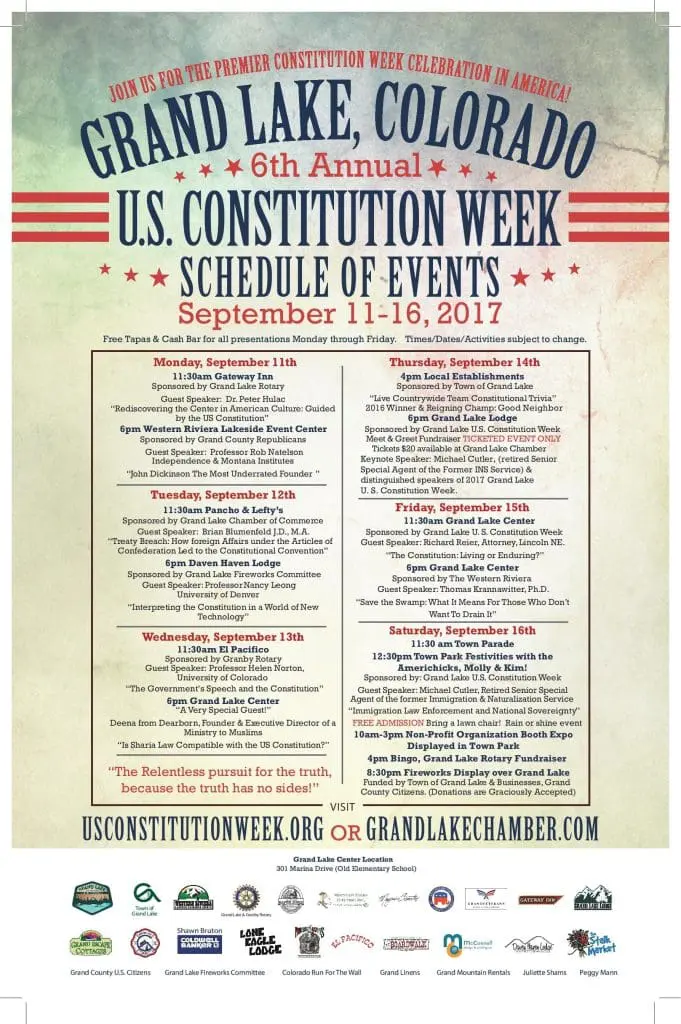 Friday, 9/15: Constitution Week Evening Event at Grand Lake Center at 6:00 p.m.
